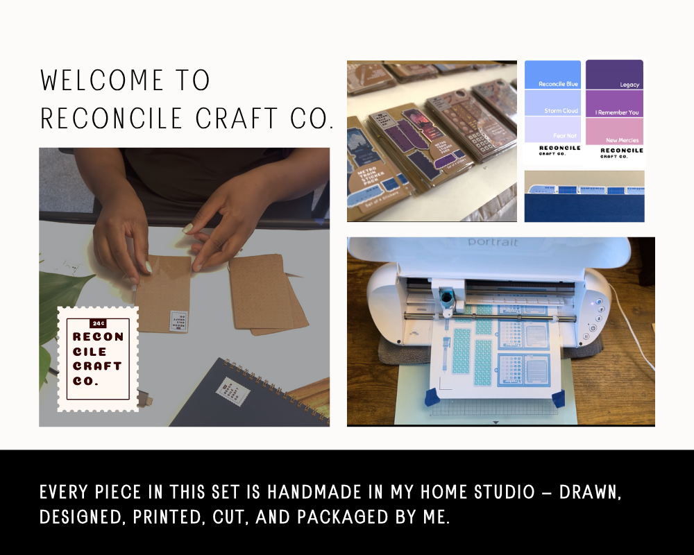 Each piece is designed and created in my home studio, usually while I talk to my Cricut like it’s a coworker who just needs a little more encouragement. I hope these creations invite you to pause, reflect, and find joy in small, creative acts — whether that’s decorating your journal, labeling your desk chaos, or having a hobby lobby vibes moment(Coffee & Jesus ya'll).