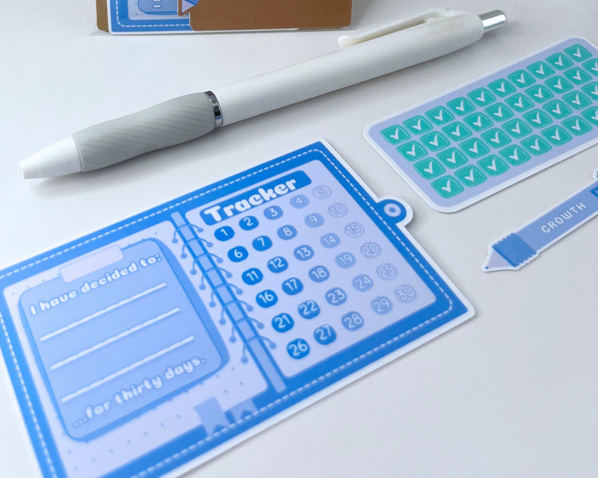 Matching Pen Sticker: A small, cute pen sticker that matches the design of the journal, adding an extra touch of charm to your habit-tracking routine.
