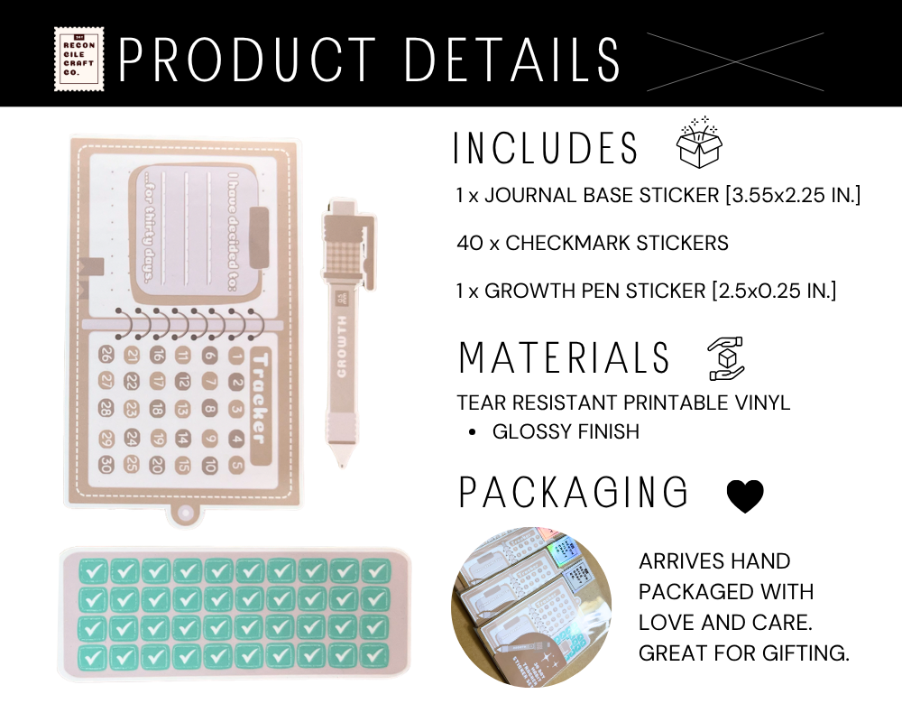 Matching Pen Sticker: A small, cute pen sticker that matches the design of the journal, adding an extra touch of charm to your habit-tracking routine.