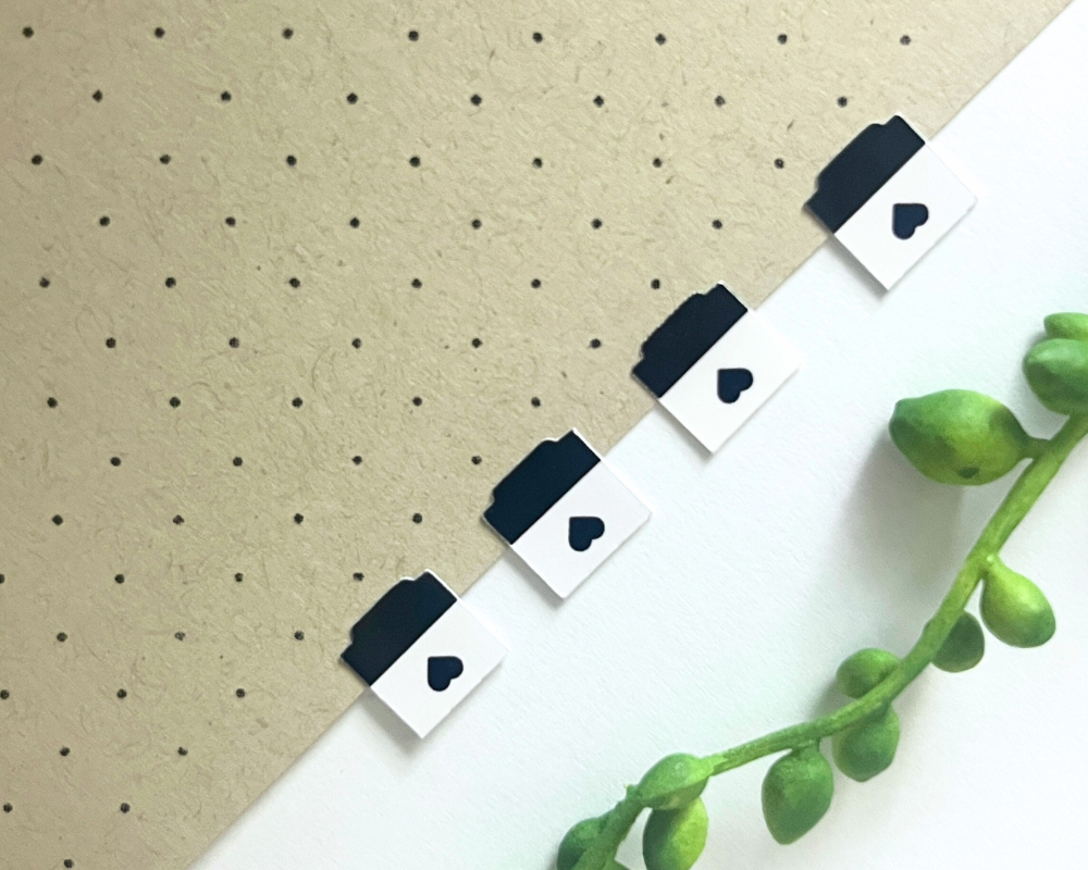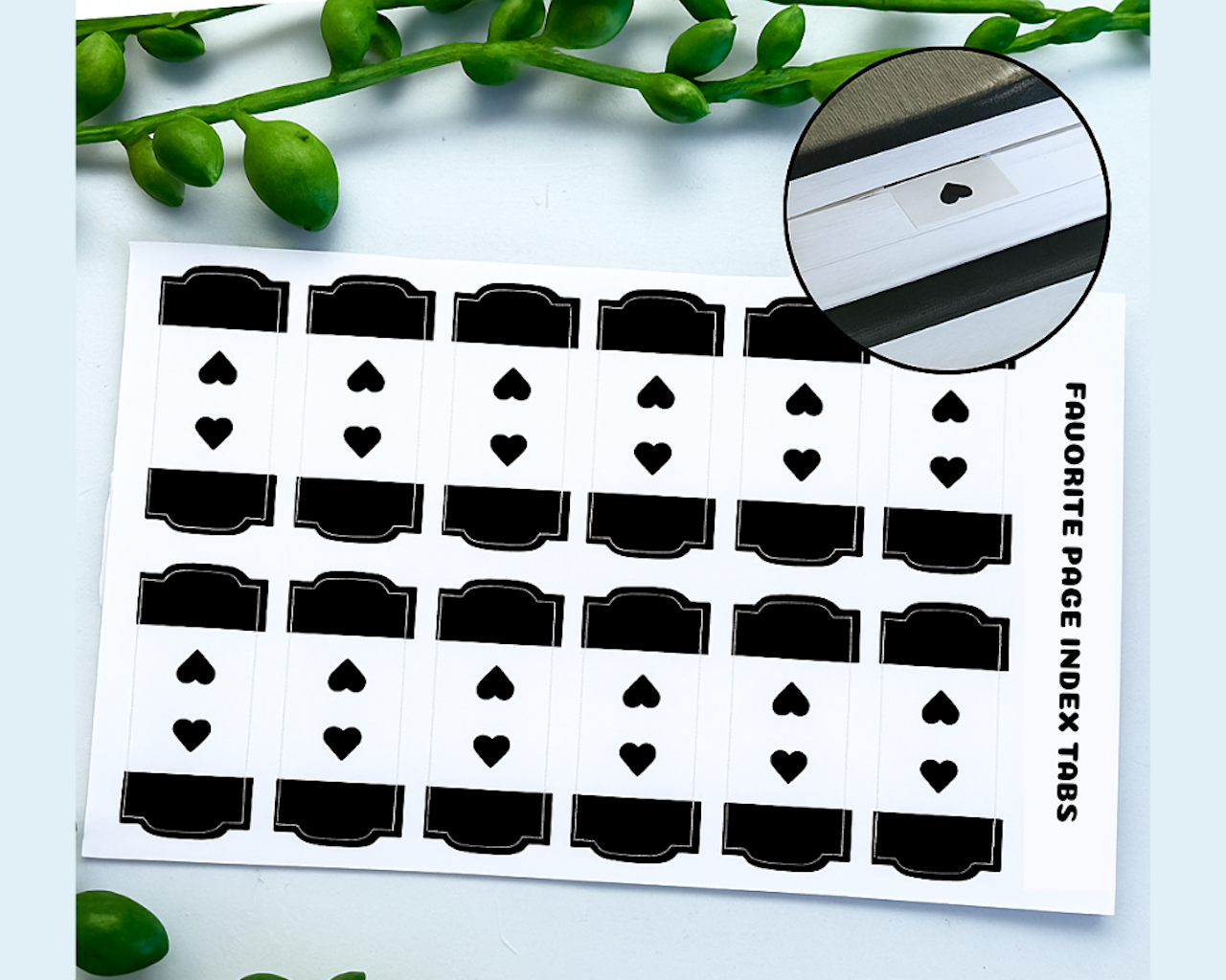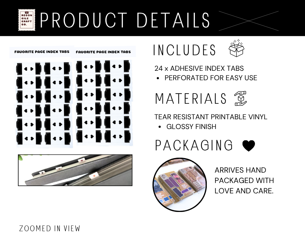 The Favorite Passage Heart Tabs in the all blck palette include 24 self-adhesive index stickers in color black.