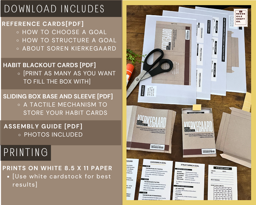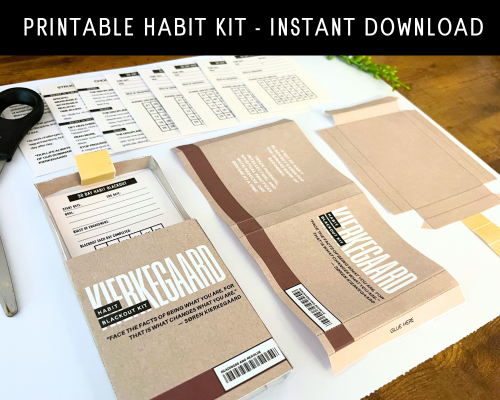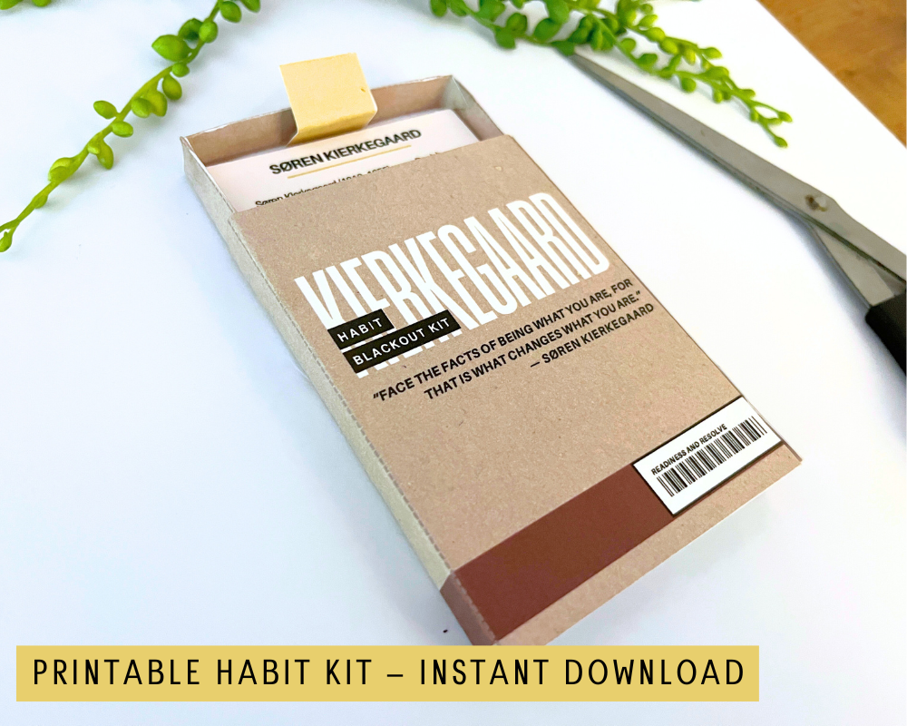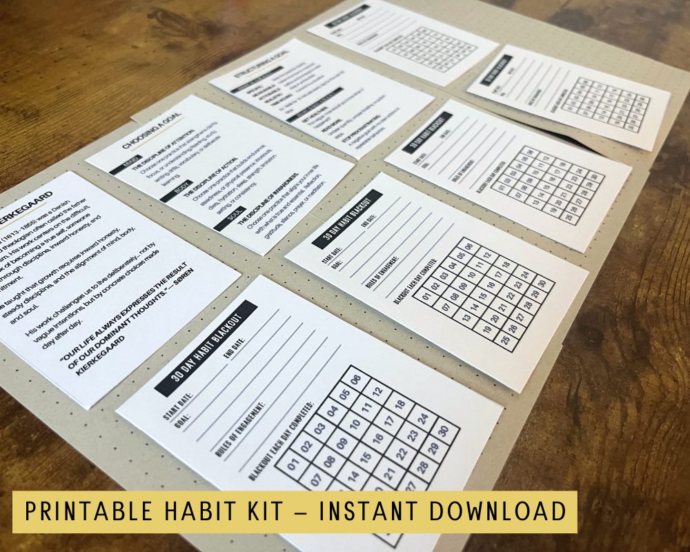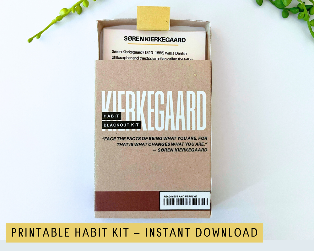 This premium printable kit is inspired by the writings of Søren Kierkegaard, the philosopher of inwardness, discipline, and becoming. Designed with a masculine, minimalist aesthetic, this set gives you (or someone you love) a simple but powerful framework for tracking meaningful habits across mind, body, and soul.
